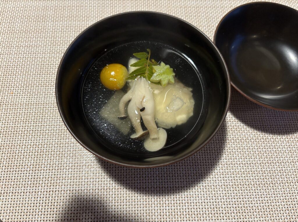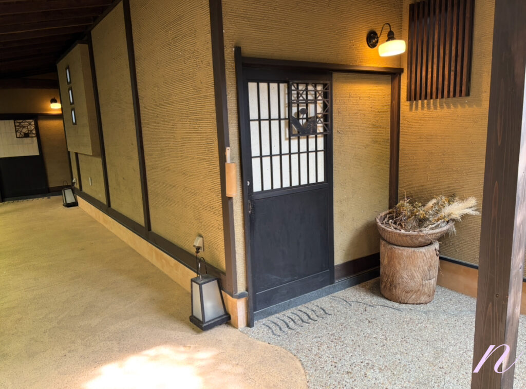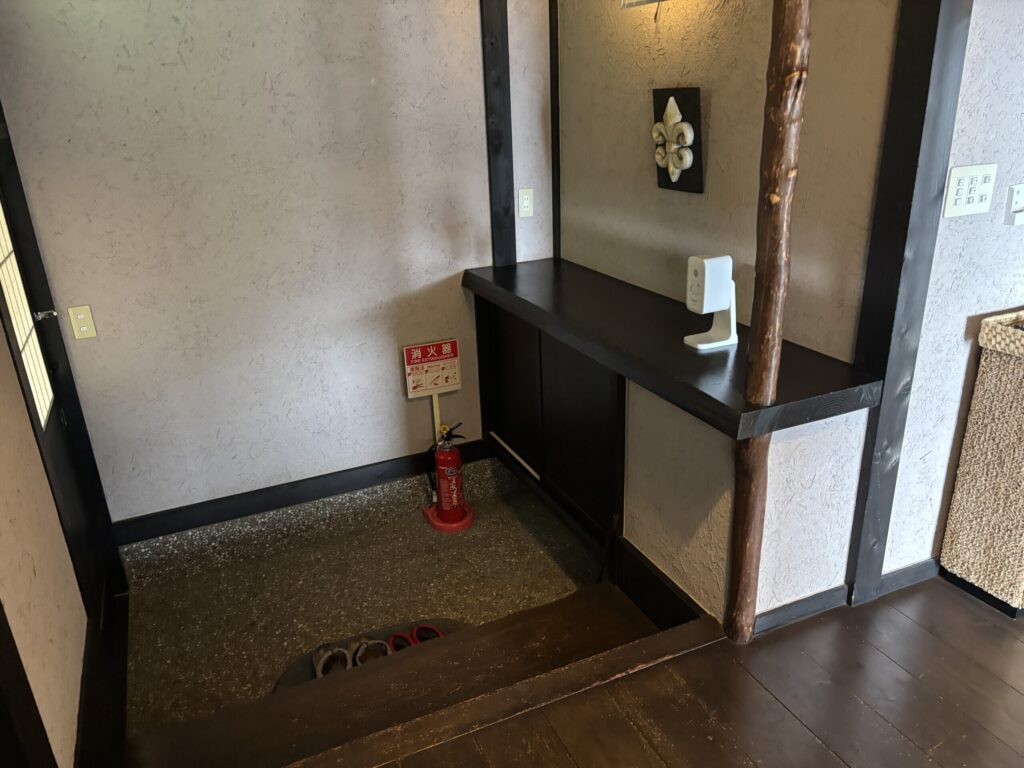 玄関入って右側の各客室専用のお食事処へ案内され、ウェルカムドリンクとお菓子をいただき、チェックイン手続きをします。