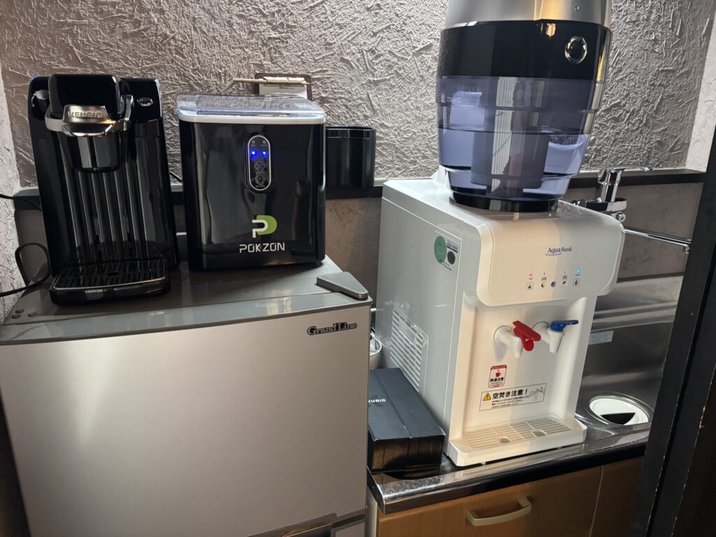 コーヒーマシンにはコーヒーと抹茶入り緑茶があり、おいしくいただきました。