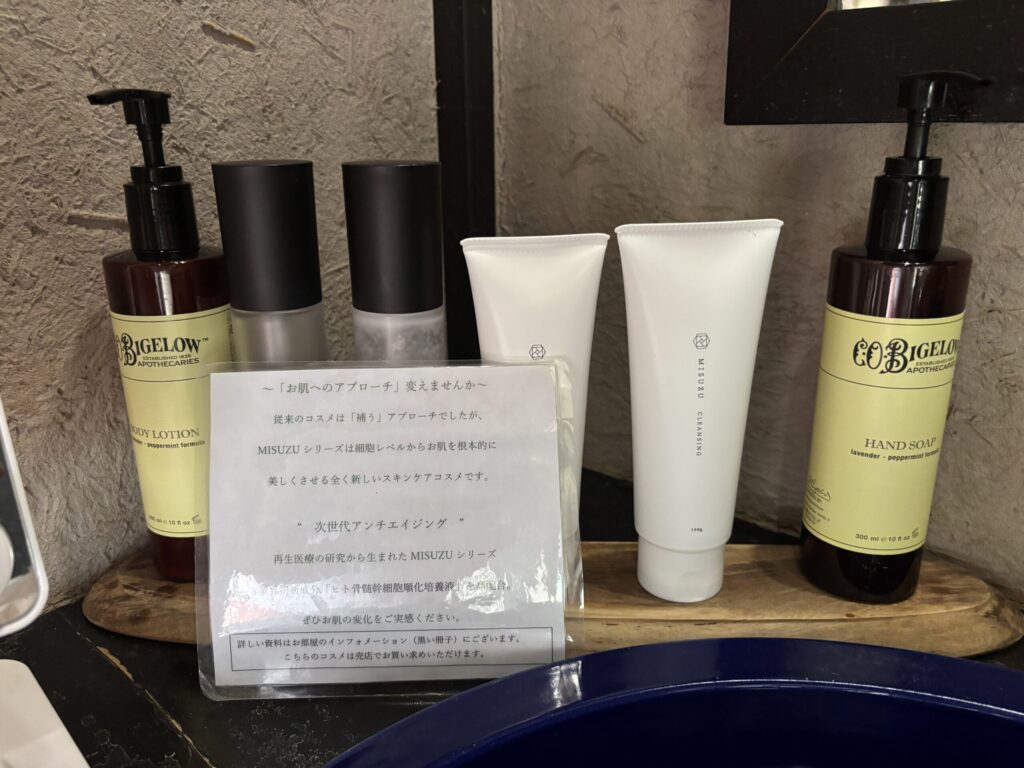 スキンケア用品は幹細胞コスメの最高峰ブランド「MISUZU(ミスズ)」がおいてあります。
