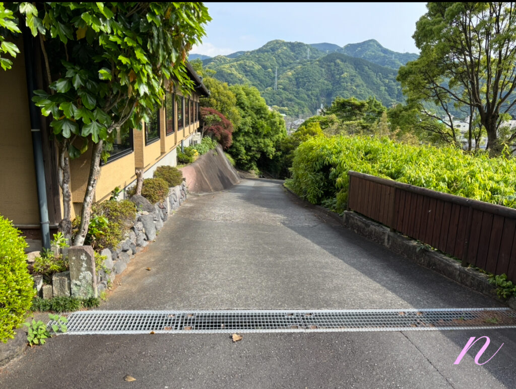 そこ(そこも狭い)を左へ上がっていくとそのまま駐車場ですぐ玄関があり、お出迎えをしてくださいました。