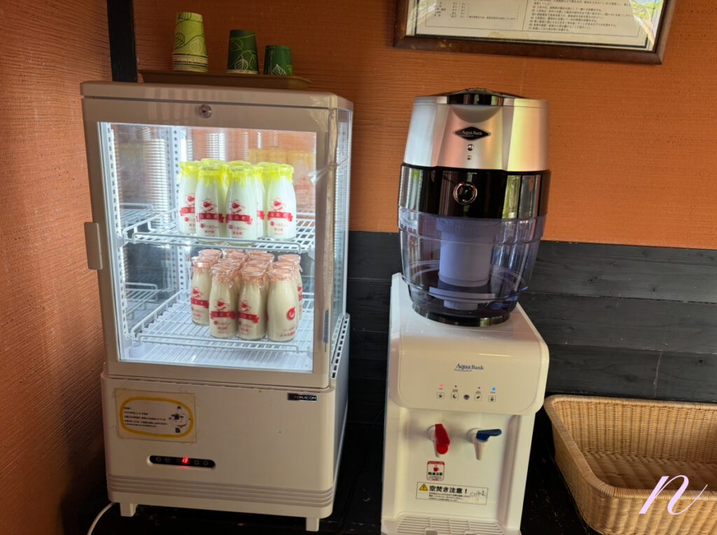 嬉しいことに、脱衣所には牛乳とコーヒー牛乳、お水がおいてあるんです。